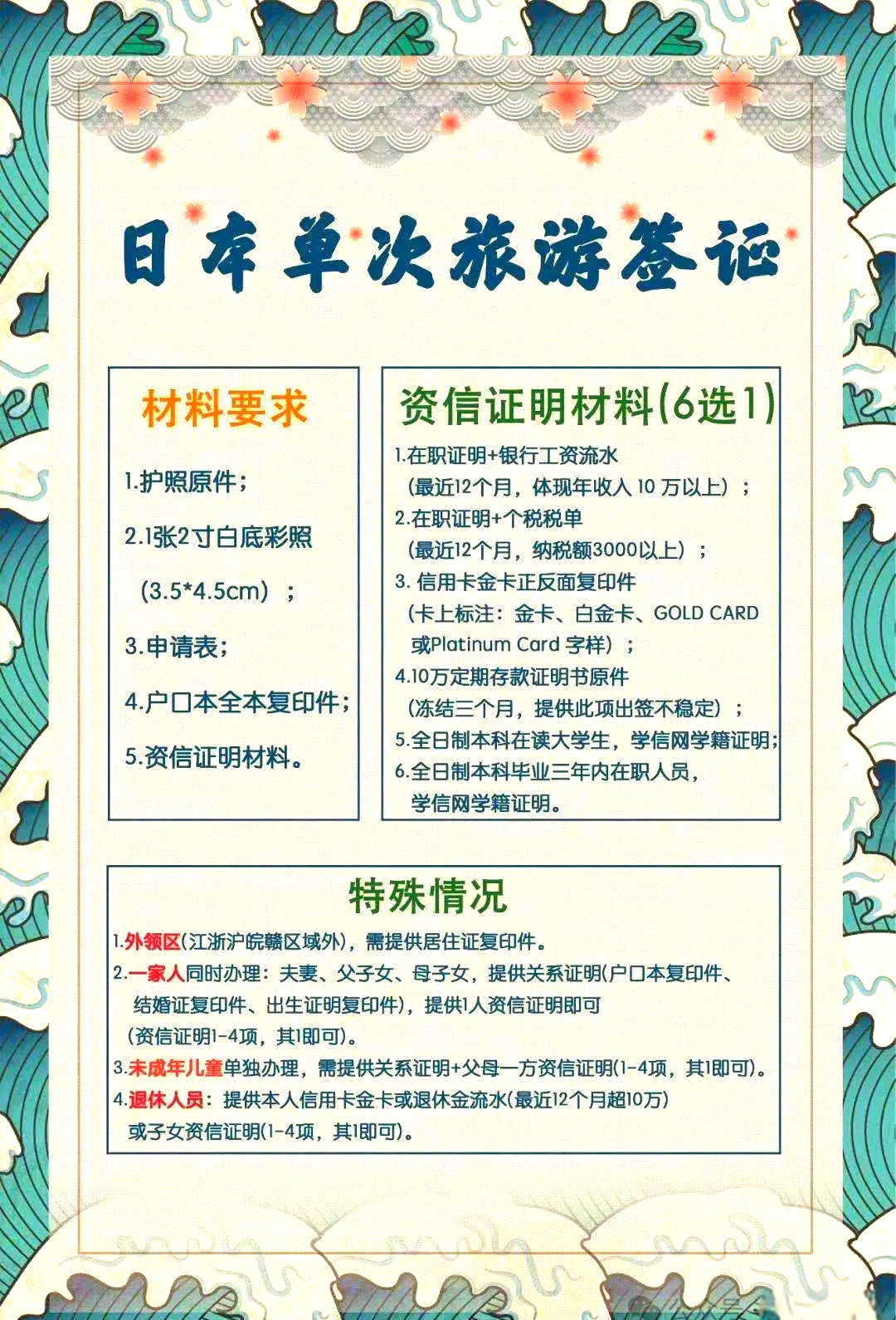 5、財務(wù)證明:申請人需提供足夠的資金證明,以支付在日本期間的費用,如銀行存款證明、信用卡等。