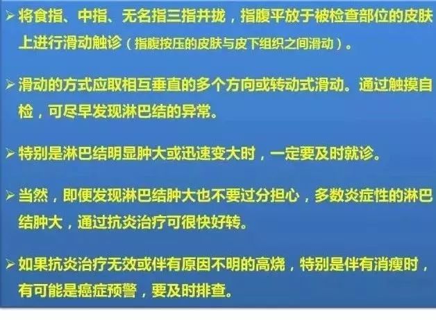 2、不要混淆正常與異常:有些人可能在正常情況下就能摸到淋巴結(jié),這并不一定意味著有問題,如果出現(xiàn)異常癥狀,如疼痛、腫脹等,則需要關(guān)注。