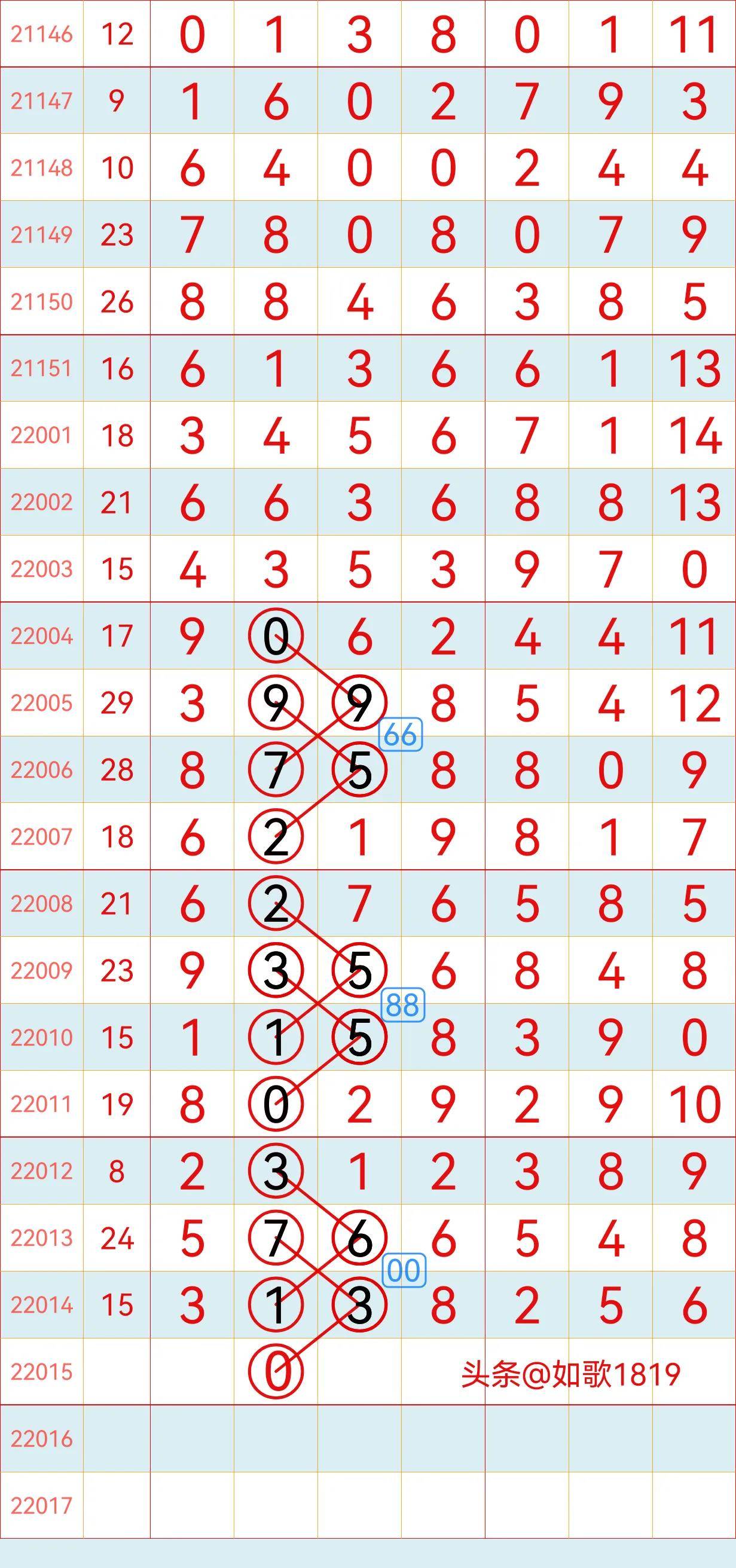 4、和值走勢:和值是指彩票號碼的總和,觀察歷史數(shù)據(jù)和值的分布情況,可以幫助我們預測未來的和值走勢,和值會在一定范圍內(nèi)波動,如果出現(xiàn)異常高的和值或異常低的和值,那么未來可能會回歸正常范圍。